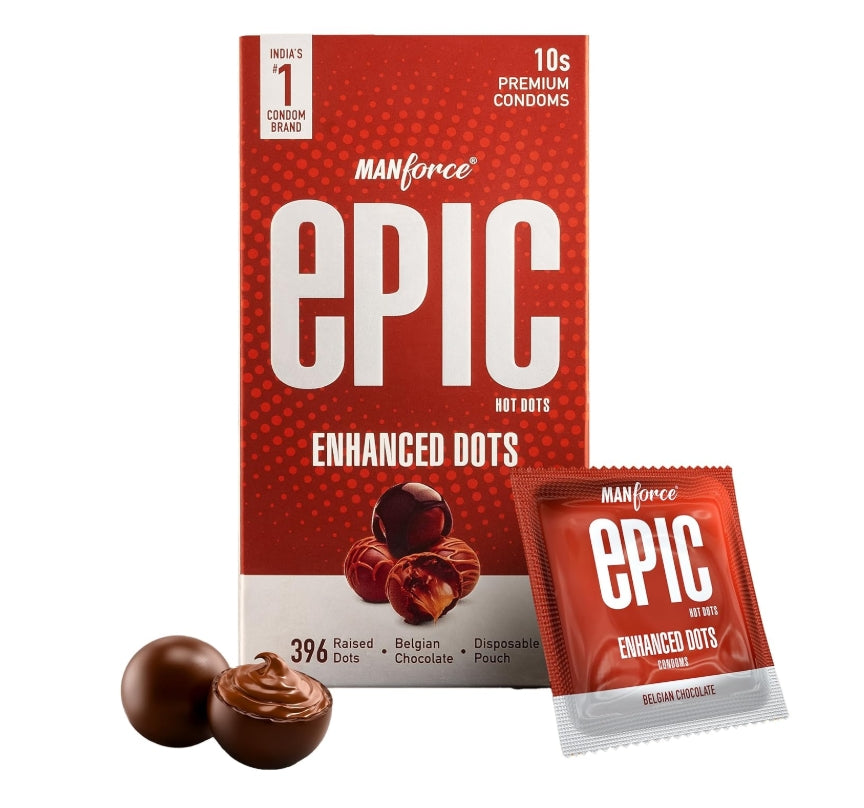 Manforce Hot Dots Belgian Chocolate Flavour Super Thin Enhanced Dots Lubricated Latex Condom for Men 10-Pieces