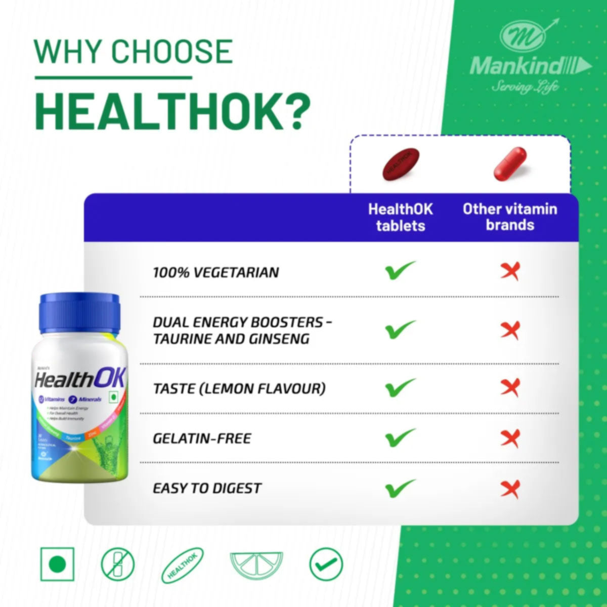 Healthok Tablet is a premium health supplement that boosts immunity, improves energy, and supports overall vitality. Packed with essential nutrients, it helps maintain a balanced and healthy lifestyle, making it perfect for both men and women who want to optimize their health.